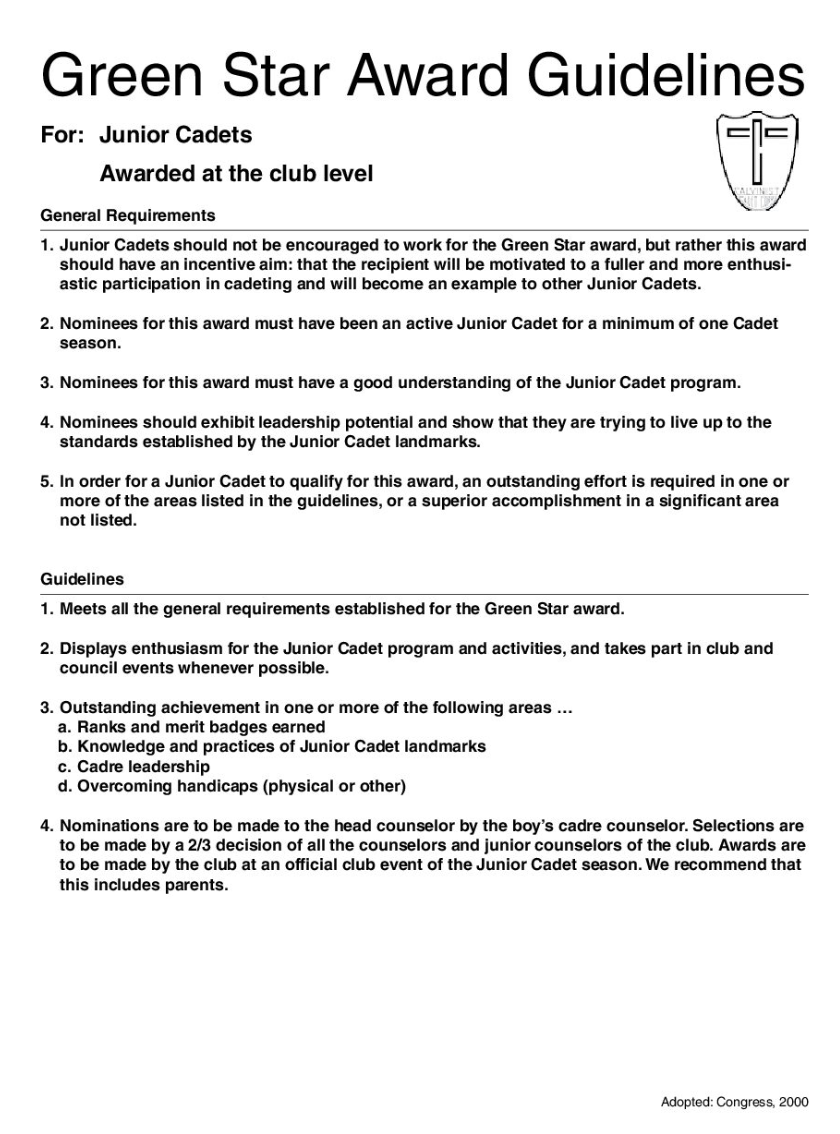 You can also DOWNLOAD A PDF OF THE GREEN STAR AWARD GUIDELINES